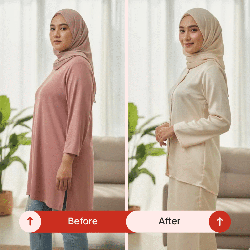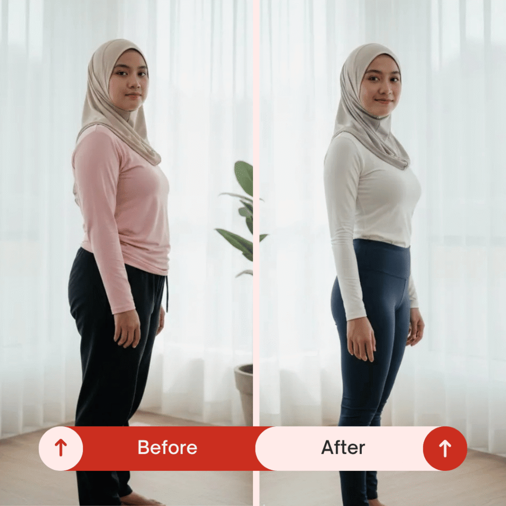 “Dulu nak pakai baju ketat memang rasa segan… sekarang perut dah makin kempis. Sapu setiap hari lepas mandi je, tak sangka boleh nampak beza cepat.”