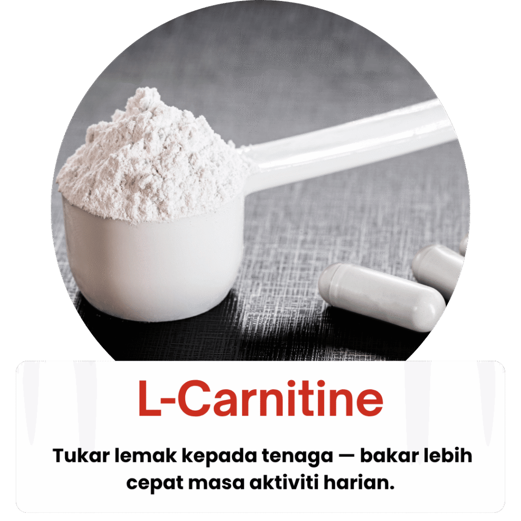 Gabungan herba premium & nutrien aktif seperti Caffeine, Capsicum & L-Carnitine untuk hasil pantas.