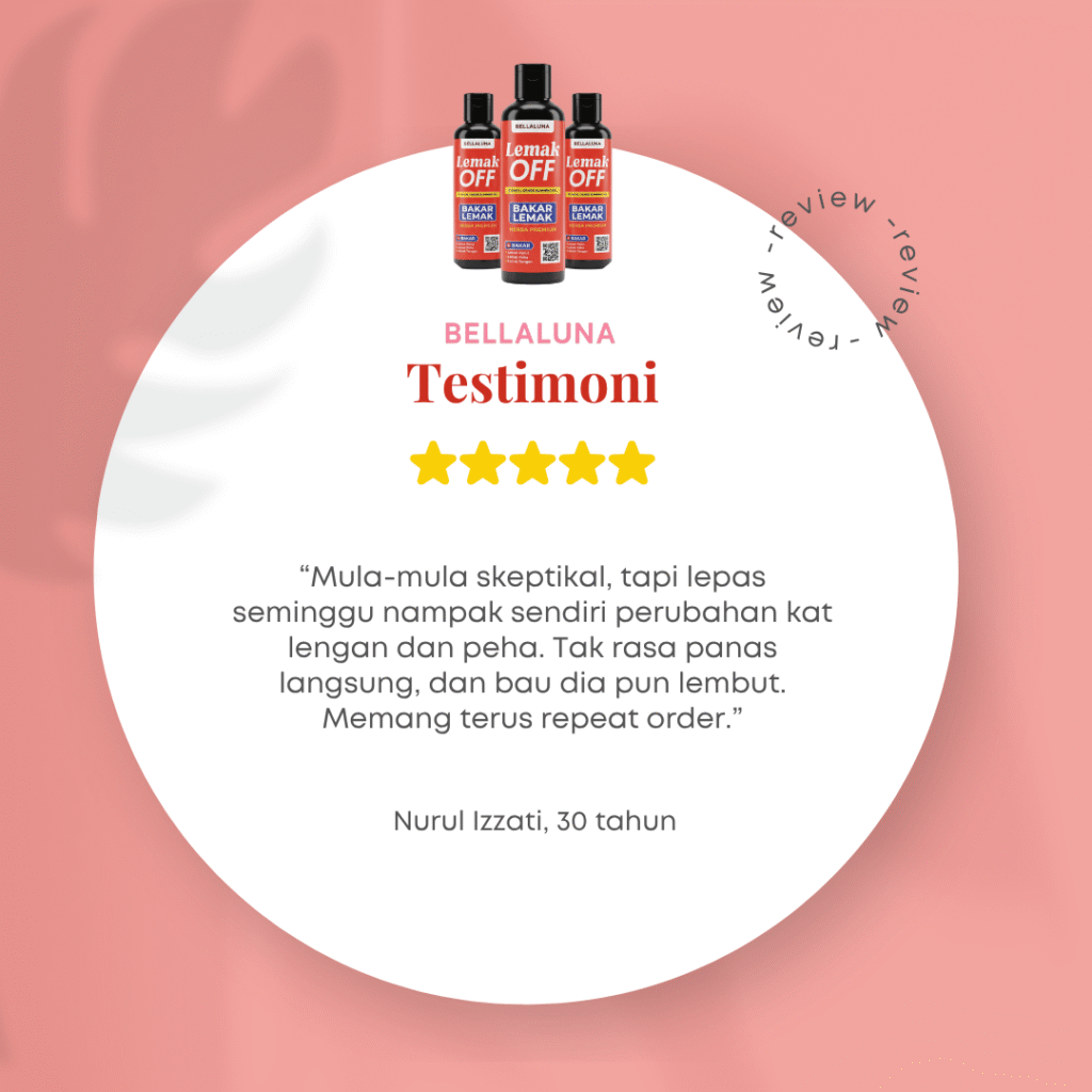 “Saya sapu Lemak OFF tiap pagi & malam, tak panas, tak melekit, memang selesa. Dalam 3 minggu, dah mula nampak kesan positif, terutama kat perut & lengan."